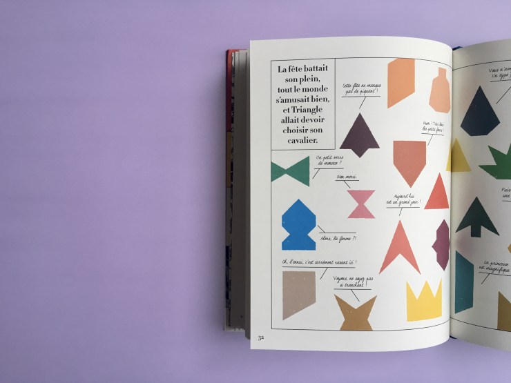 Dans ce livre, projet très ambitieux dont les prémisses ont pris forme en 2013 et 2014 dans quatre histoires successives parues alors dans le magazine Georges, il était une fois, dans un royaume où il est de bon ton d’être anguleux, une parfaite princesse triangle équilatéral qui s’éprend, au grand dam de ses parents et de la cour, d’un prétendant bien plus courbe que souhaité…