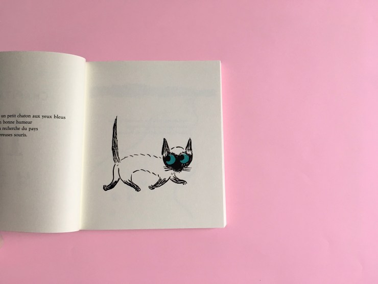 Cette édition française du Chat aux yeux bleus, reprenant à l’identique l’édition originale voulue par l’auteur au Danemark en 1949, prend place dans le catalogue très intéressant des grandes rééditions patrimoniales de la Bibliothèque Nationale de France. Un travail important sur l’illustration jeunesse y est mené sous la direction de Carine Picaud qui nous donne accès à des trésors issus de la réserve des livres rares de la BNF. Si vous suivez ces chroniques régulièrement, vous avez peut-être remarqué mon goût pour l’histoire de l’album jeunesse et certains travaux de réédition menés actuellement ; cette volonté éditoriale de la BNF me réjouit donc tout particulièrement, me permettant ici de découvrir ce grand classique danois qui accompagne encore nombre d’enfants.