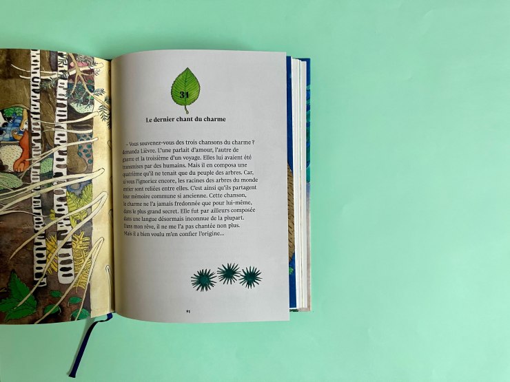 Le texte, bien que plus long et dense que dans la majorité des albums, laisse une réelle importance aux illustrations d’Émilie Seron dont les tracés fins à la plume et les couleurs diffuses à l’aquarelle et à l’encre fascinent par leur minutie. L’illustratrice apporte une étrangeté propre à son style donnant un effet saisissant de nouveau folklore dans cette nature foisonnante des alentours du terrier. Un travail intéressant de mise en page a été effectué, reprenant certains codes des recueils classiques avec des têtes de chapitres, une table des matière, des frises ou enluminures et des illustrations entourant parfois le texte pour mieux l’accompagner, tout en se réservant certaines pleines pages particulièrement réussies et rythmant à merveille la narration.